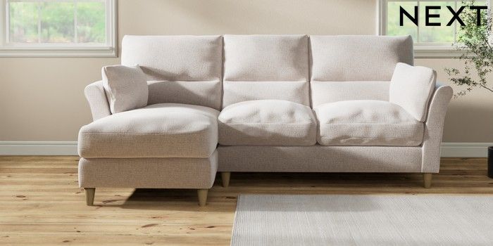 7.3.1 Buy Hartley Highback Relaxed Sit Medium Sofa Chaise - Left Hand Multi Weave Oyster Low Conical - Light from the Laura Ashley online shop
