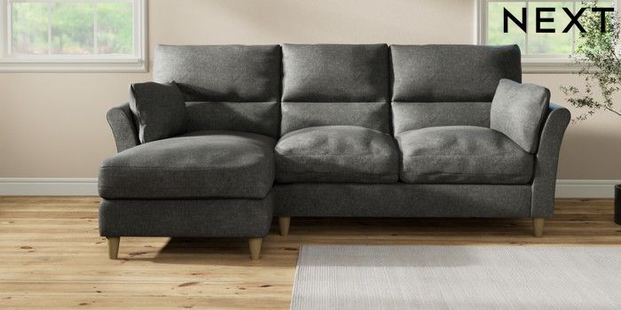 7.3.1 Buy Hartley Highback Relaxed Sit Medium Sofa Chaise - Left Hand Plush Chenille Dark Grey Low Conical - Light from the Laura Ashley online shop