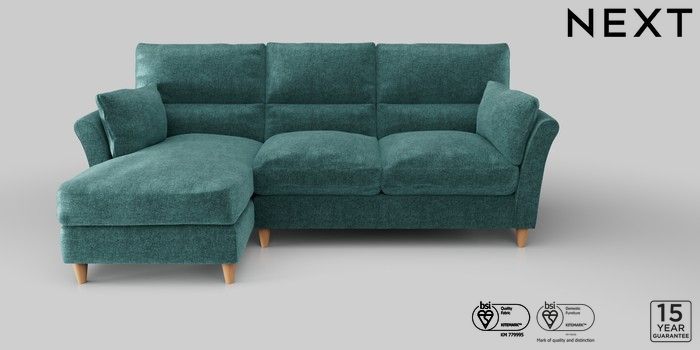 6.12.1 Buy Hartley Highback Relaxed Sit Medium Sofa Chaise - Left Hand Plush Chenille Dark Teal Green Low Conical - Light from the Laura Ashley online shop Click here to use our website with more accessibility support, for example screen readers