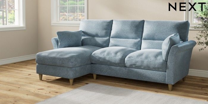 7.2.6 Buy Hartley Highback Relaxed Sit Medium Sofa Chaise - Left Hand Plush Chenille Light Blue Low Conical - Light from the Laura Ashley online shop Click here to use our website with more accessibility support, for example screen readers