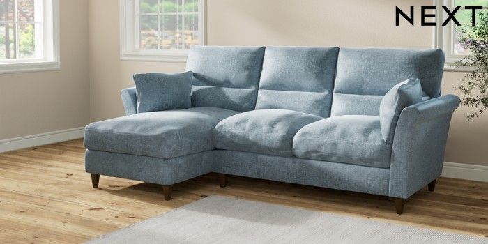 7.2.6 Buy Hartley Highback Relaxed Sit Medium Sofa Chaise - Left Hand Plush Chenille Light Blue Low Conical - Mid from the Laura Ashley online shop Click here to use our website with more accessibility support, for example screen readers