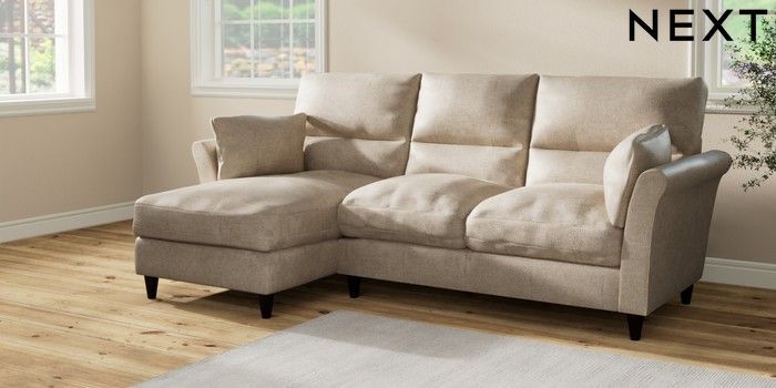7.2.10 Buy Hartley Highback Relaxed Sit Medium Sofa Chaise - Left Hand Plush Chenille Light Natural Low Conical - Dark from the Laura Ashley online shop Click here to use our website with more accessibility support, for example screen readers
