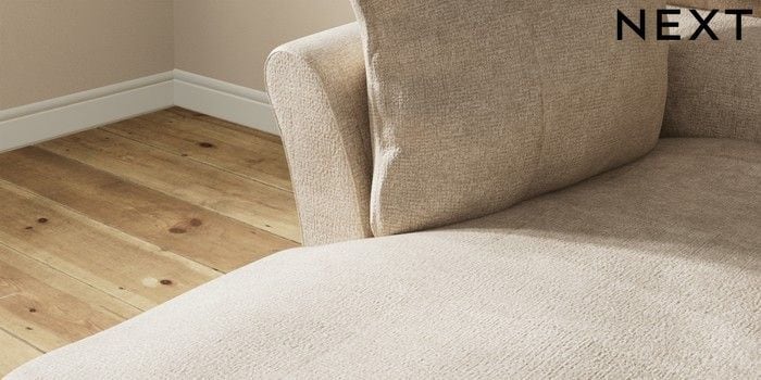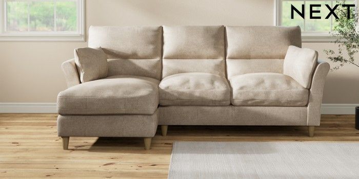 7.3.1 Buy Hartley Highback Relaxed Sit Medium Sofa Chaise - Left Hand Plush Chenille Light Natural Low Conical - Light from the Laura Ashley online shop