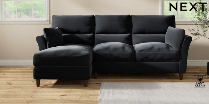 7.3.1 Buy Hartley Highback Relaxed Sit Medium Sofa Chaise - Left Hand Plush Velvet Easy Clean Charcoal Grey Low Conical - Mid from the Laura Ashley online shop Click here to use our website with more accessibility support, for example screen readers