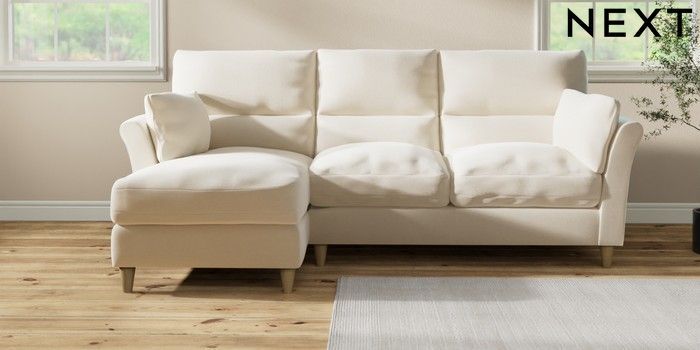 7.3.1 Buy Hartley Highback Relaxed Sit Medium Sofa Chaise - Left Hand Ripple Chenille Oyster Low Conical - Light from the Laura Ashley online shop