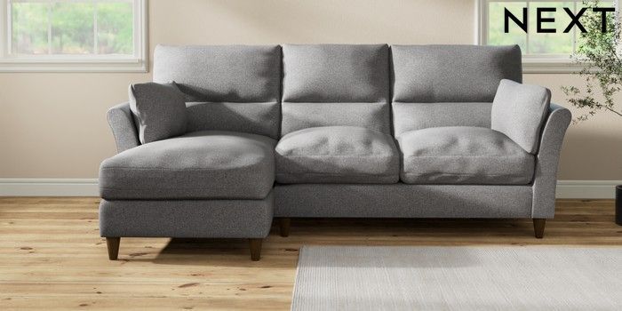 7.3.1 Buy Hartley Highback Relaxed Sit Medium Sofa Chaise - Left Hand Studio Chenille Mid Grey Low Conical - Mid from the Laura Ashley online shop