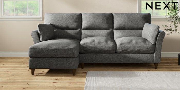 7.3.1 Buy Hartley Highback Relaxed Sit Medium Sofa Chaise - Left Hand Tweedy Chenille Dark Grey Low Conical - Mid from the Laura Ashley online shop
