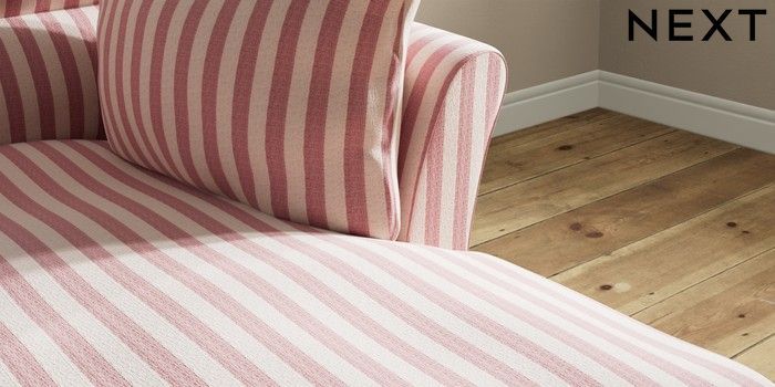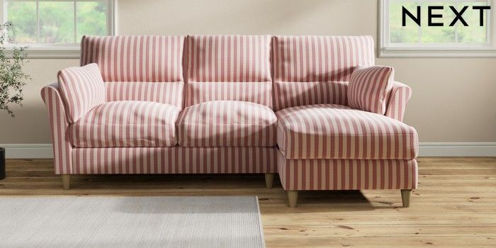 7.3.1 Buy Hartley Highback Relaxed Sit Medium Sofa Chaise - Right Hand Bold Chenille Stripe Dark Pink Low Conical - Light from the Laura Ashley online shop
