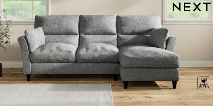 7.3.1 Buy Hartley Highback Relaxed Sit Medium Sofa Chaise - Right Hand Chunky Boucle Easy Clean Mid Grey Low Conical - Dark from the Laura Ashley online shop