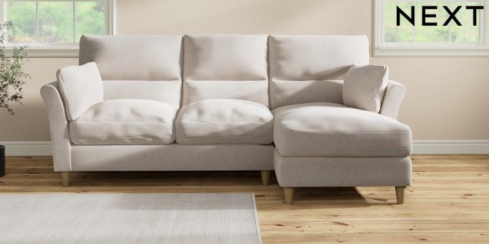 7.3.1 Buy Hartley Highback Relaxed Sit Medium Sofa Chaise - Right Hand Chunky Chenille Oyster Low Conical - Light from the Laura Ashley online shop
