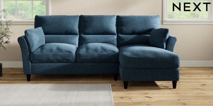 7.3.1 Buy Hartley Highback Relaxed Sit Medium Sofa Chaise - Right Hand Cotswold Chenille Dark Blue Low Conical - Dark from the Laura Ashley online shop