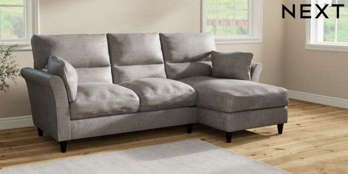 7.2.10 Buy Hartley Highback Relaxed Sit Medium Sofa Chaise - Right Hand Plush Chenille Light Grey Low Conical - Dark from the Laura Ashley online shop Click here to use our website with more accessibility support, for example screen readers