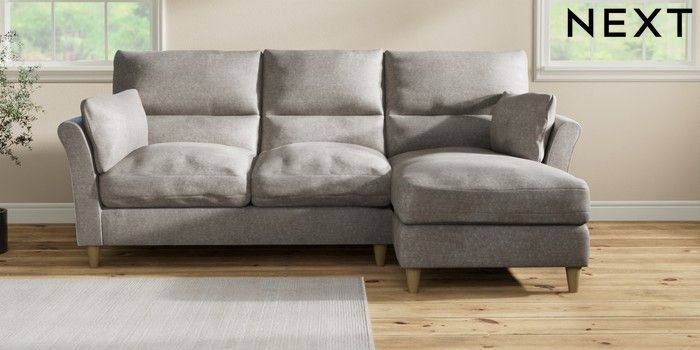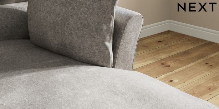 7.3.1 Buy Hartley Highback Relaxed Sit Medium Sofa Chaise - Right Hand Plush Chenille Light Grey Low Conical - Light from the Laura Ashley online shop