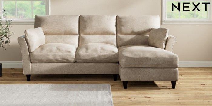 7.3.1 Buy Hartley Highback Relaxed Sit Medium Sofa Chaise - Right Hand Plush Chenille Light Natural Low Conical - Dark from the Laura Ashley online shop