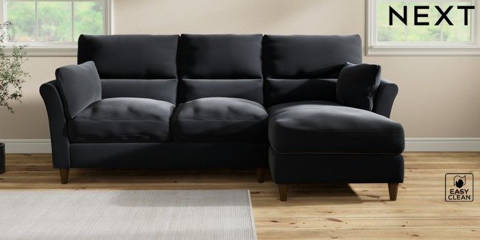 7.3.1 Buy Hartley Highback Relaxed Sit Medium Sofa Chaise - Right Hand Plush Velvet Easy Clean Charcoal Grey Low Conical - Mid from the Laura Ashley online shop Click here to use our website with more accessibility support, for example screen readers