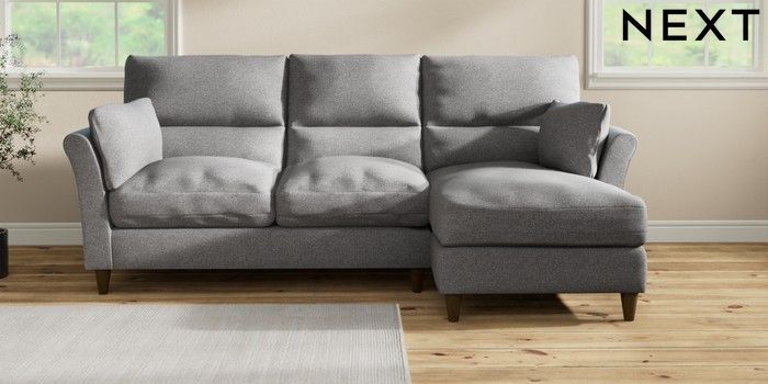 7.3.1 Buy Hartley Highback Relaxed Sit Medium Sofa Chaise - Right Hand Studio Chenille Mid Grey Low Conical - Mid from the Laura Ashley online shop