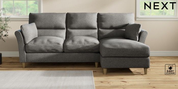7.3.1 Buy Hartley Highback Relaxed Sit Medium Sofa Chaise - Right Hand Tweedy Blend Easy Clean Dark Grey Low Conical - Light from the Laura Ashley online shop