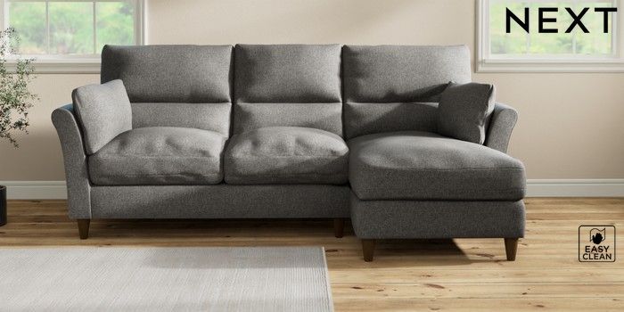 7.3.1 Buy Hartley Highback Relaxed Sit Medium Sofa Chaise - Right Hand Tweedy Blend Easy Clean Dark Grey Low Conical - Mid from the Laura Ashley online shop