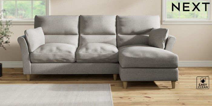 7.3.1 Buy Hartley Highback Relaxed Sit Medium Sofa Chaise - Right Hand Woven Chenille Easy Clean Light Grey Low Conical - Light from the Laura Ashley online shop