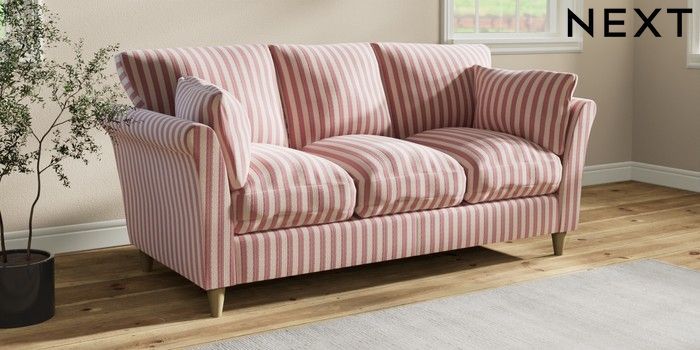 7.3.1 Buy Hartley Relaxed Sit 3 Cushion 3 Seater Sofa Bold Chenille Stripe Dark Pink Low Conical - Light from the Laura Ashley online shop