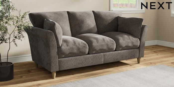 7.3.1 Buy Hartley Relaxed Sit 3 Cushion 3 Seater Sofa Chunky Chenille Mink Brown Low Conical - Light from the Laura Ashley online shop