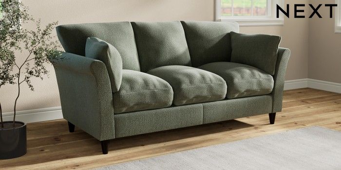 7.3.1 Buy Hartley Relaxed Sit 3 Cushion 3 Seater Sofa Chunky Texture Mid Forest Green Low Conical - Dark from the Laura Ashley online shop Click here to use our website with more accessibility support, for example screen readers