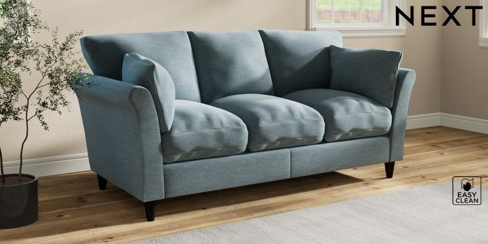 7.3.1 Buy Hartley Relaxed Sit 3 Cushion 3 Seater Sofa Fine Chenille Easy Clean Mid Blue Low Conical - Dark from the Laura Ashley online shop Click here to use our website with more accessibility support, for example screen readers