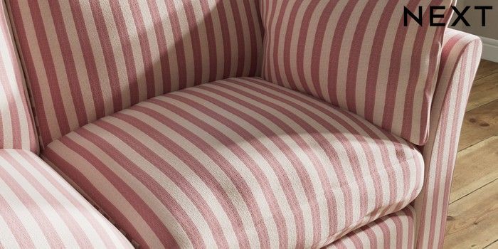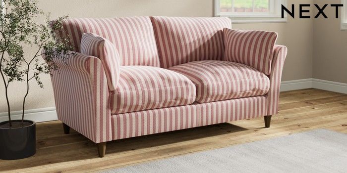 7.3.1 Buy Hartley Relaxed Sit 3 Seater Small Sofa Bold Chenille Stripe Dark Pink Low Conical - Mid from the Laura Ashley online shop