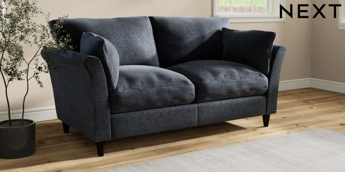 7.3.1 Buy Hartley Relaxed Sit 3 Seater Small Sofa Boucle Chenille Dark Slate Blue Low Conical - Dark from the Laura Ashley online shop