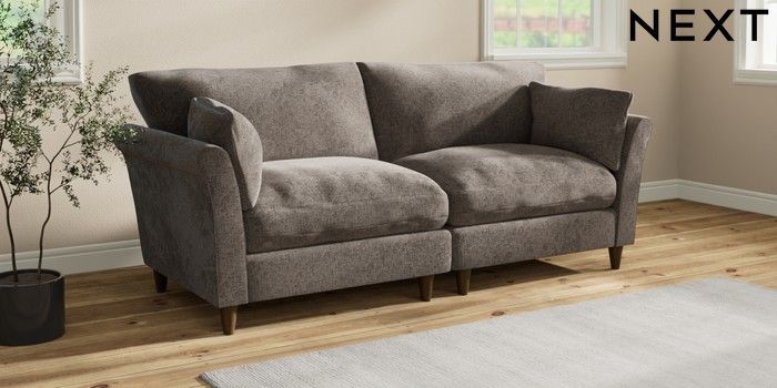 7.3.1 Buy Hartley Relaxed Sit 4 Seater Sofa Chunky Chenille Mink Brown Low Conical - Mid from the Laura Ashley online shop