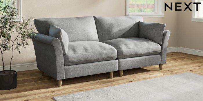 7.3.1 Buy Hartley Relaxed Sit 4 Seater Sofa Chunky Weave Mid Grey Low Conical - Light from the Laura Ashley online shop