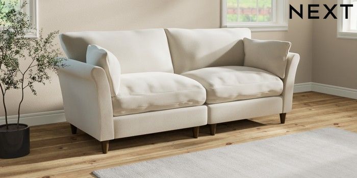 7.3.1 Buy Hartley Relaxed Sit 4 Seater Sofa Relaxed Linen Look Oyster Low Conical - Mid from the Laura Ashley online shop Click here to use our website with more accessibility support, for example screen readers
