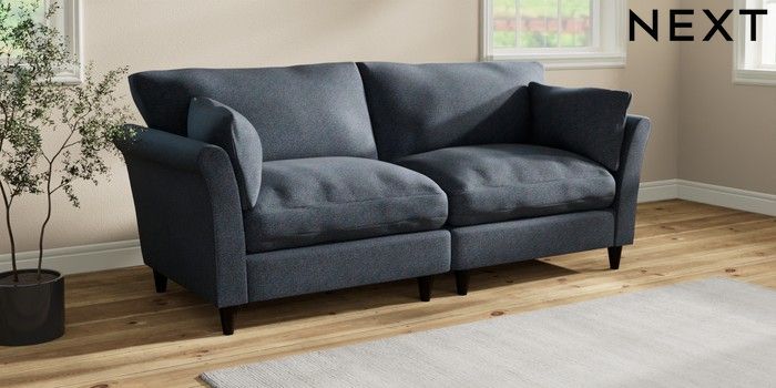 7.3.1 Buy Hartley Relaxed Sit 4 Seater Sofa Tweedy Chenille Navy Blue Low Conical - Dark from the Laura Ashley online shop
