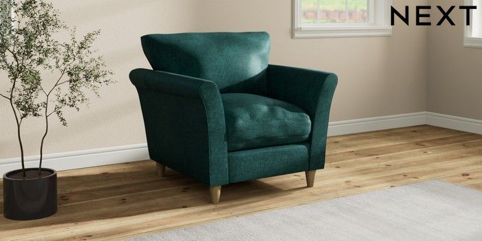 7.3.1 Buy Hartley Relaxed Sit Armchair Plush Chenille Dark Teal Green Low Conical - Light from the Laura Ashley online shop