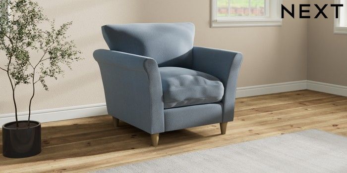 7.3.1 Buy Hartley Relaxed Sit Armchair Relaxed Linen Look Mid Blue Low Conical - Light from the Laura Ashley online shop Click here to use our website with more accessibility support, for example screen readers