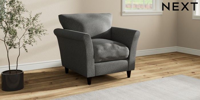 7.3.1 Buy Hartley Relaxed Sit Armchair Tweedy Chenille Dark Grey Low Conical - Dark from the Laura Ashley online shop Click here to use our website with more accessibility support, for example screen readers