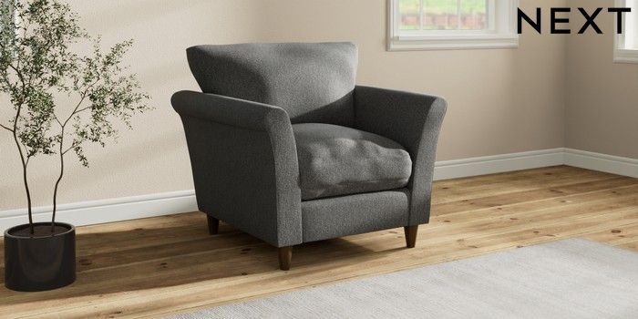 7.3.1 Buy Hartley Relaxed Sit Armchair Tweedy Chenille Dark Grey Low Conical - Mid from the Laura Ashley online shop Click here to use our website with more accessibility support, for example screen readers