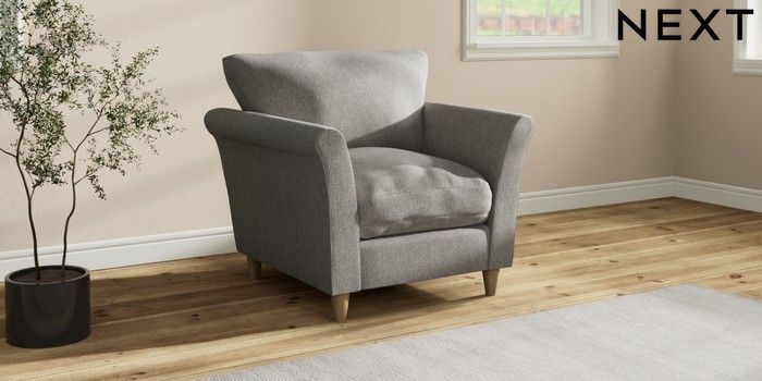 7.3.1 Buy Hartley Relaxed Sit Armchair Tweedy Chenille Mid Grey Low Conical - Light from the Laura Ashley online shop Click here to use our website with more accessibility support, for example screen readers