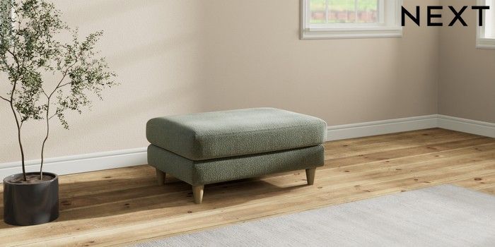 7.3.1 Buy Hartley Relaxed Sit Footstool Chunky Texture Mid Forest Green Low Conical - Light from the Laura Ashley online shop Click here to use our website with more accessibility support, for example screen readers