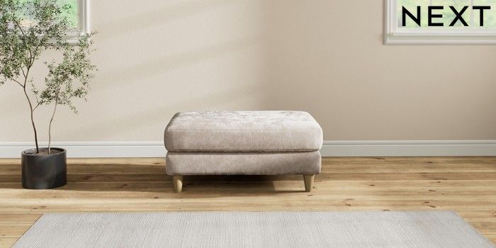 7.2.10 Buy Hartley Relaxed Sit Footstool Distressed Velour Mid Natural Low Conical - Light from the Laura Ashley online shop Click here to use our website with more accessibility support, for example screen readers