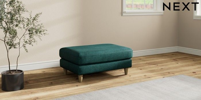 7.3.1 Buy Hartley Relaxed Sit Footstool Plush Chenille Dark Teal Green Low Conical - Light from the Laura Ashley online shop