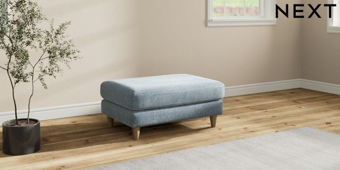7.3.1 Buy Hartley Relaxed Sit Footstool Plush Chenille Light Blue Low Conical - Light from the Laura Ashley online shop