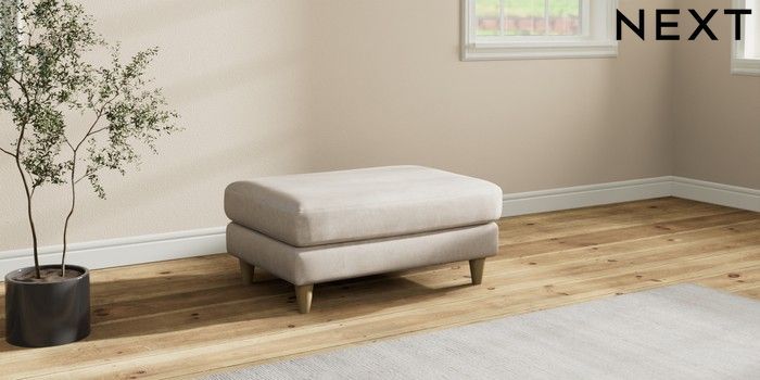 7.3.1 Buy Hartley Relaxed Sit Footstool Plush Chenille Oyster Low Conical - Light from the Laura Ashley online shop