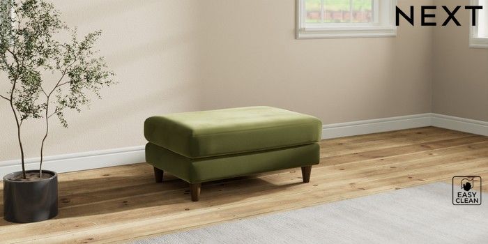 7.3.1 Buy Hartley Relaxed Sit Footstool Plush Velvet Easy Clean Mid Olive Green Low Conical - Mid from the Laura Ashley online shop