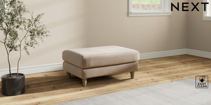 7.3.1 Buy Hartley Relaxed Sit Footstool Tweedy Blend Easy Clean Light Dove Natural Low Conical - Light from the Laura Ashley online shop