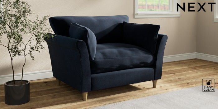 7.3.1 Buy Hartley Relaxed Sit Love Seat Fine Chenille Easy Clean Dark Navy Blue Low Conical - Light from the Laura Ashley online shop Click here to use our website with more accessibility support, for example screen readers
