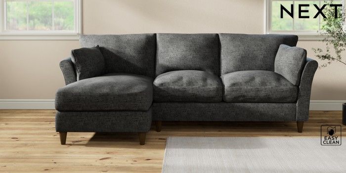 7.3.1 Buy Hartley Relaxed Sit Medium Sofa Chaise - Left Hand Boucle Weave Easy Clean Charcoal Grey Low Conical - Mid from the Laura Ashley online shop