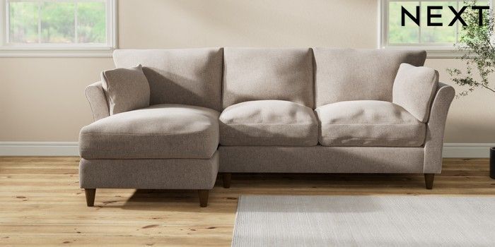 7.3.1 Buy Hartley Relaxed Sit Medium Sofa Chaise - Left Hand Chunky Chenille Light Dove Low Conical - Mid from the Laura Ashley online shop