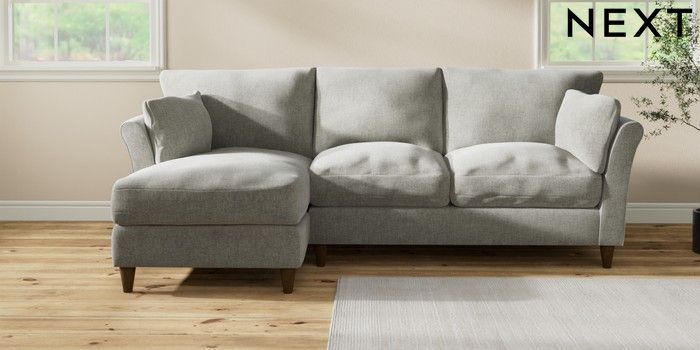 7.3.1 Buy Hartley Relaxed Sit Medium Sofa Chaise - Left Hand Chunky Chenille Light Grey Low Conical - Mid from the Laura Ashley online shop