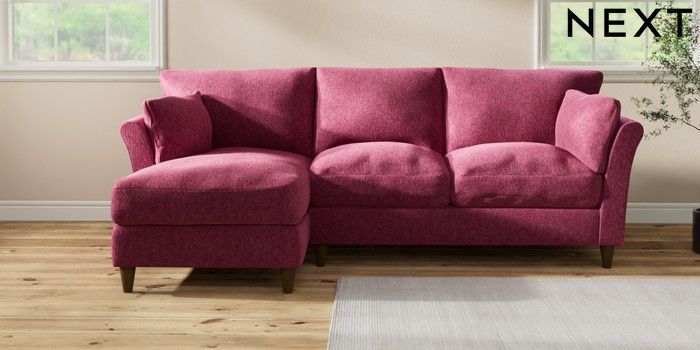 7.3.1 Buy Hartley Relaxed Sit Medium Sofa Chaise - Left Hand Cotswold Chenille Dark Raspberry Pink Low Conical - Mid from the Laura Ashley online shop